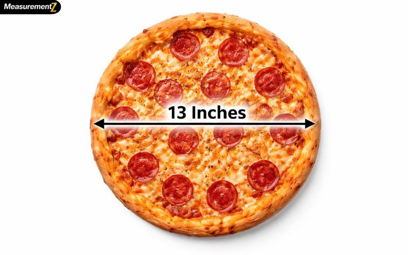 A large pizza often measures about 13 inches in diameter. The measurement refers to the distance across the pizza from one edge to the other, passing through the center. This size is common in many pizza restaurants and is typically shared between two or three people.