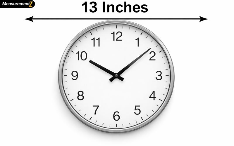 When visualizing 13 inches, think about the width of a medium-sized wall clock hanging above a desk or sofa. The circular shape provides a clear reference for understanding the span of 13 inches in a simple and familiar way.